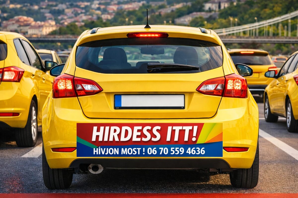 Autóink hátsó lökhárítóján elhelyezett hirdetéseit naponta több ezer autós és gyalogos láthatja Budapest legforgalmasabb pontjain.